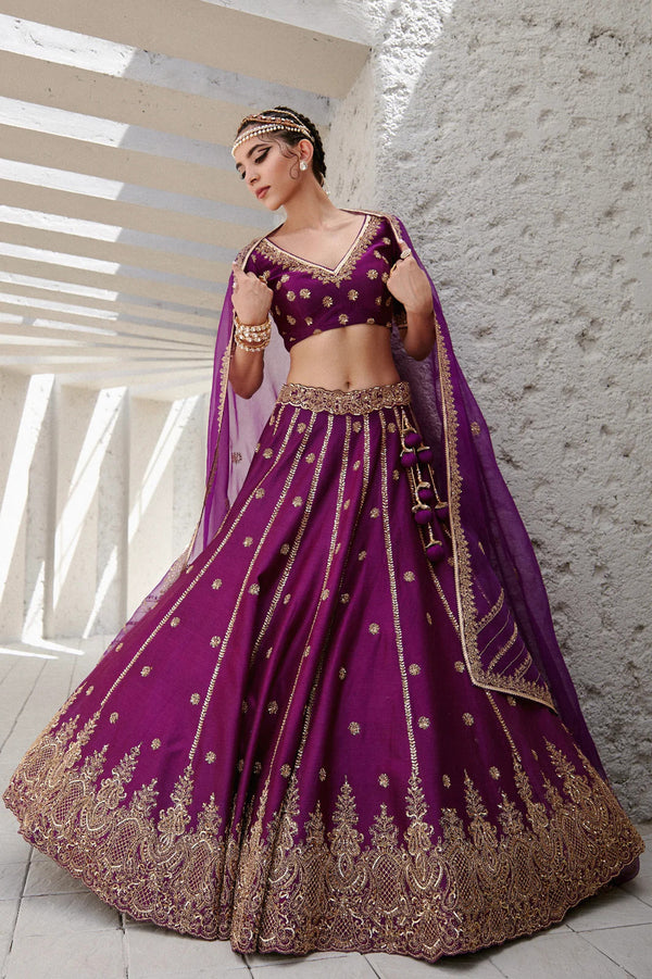 Lehnga With Attached Dupatta And Hand Embroidered Blouse