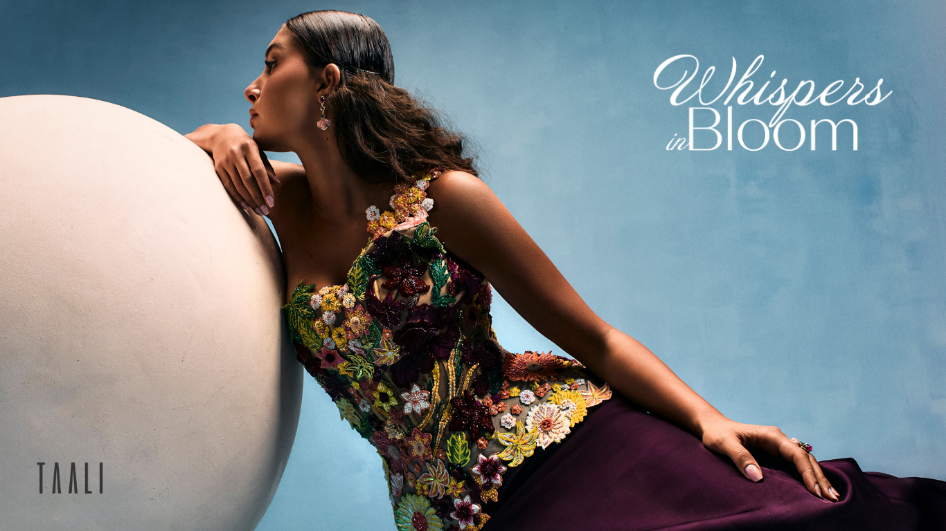 An Embroidered Lehenga With a Floral Motive And Feather Sleeves