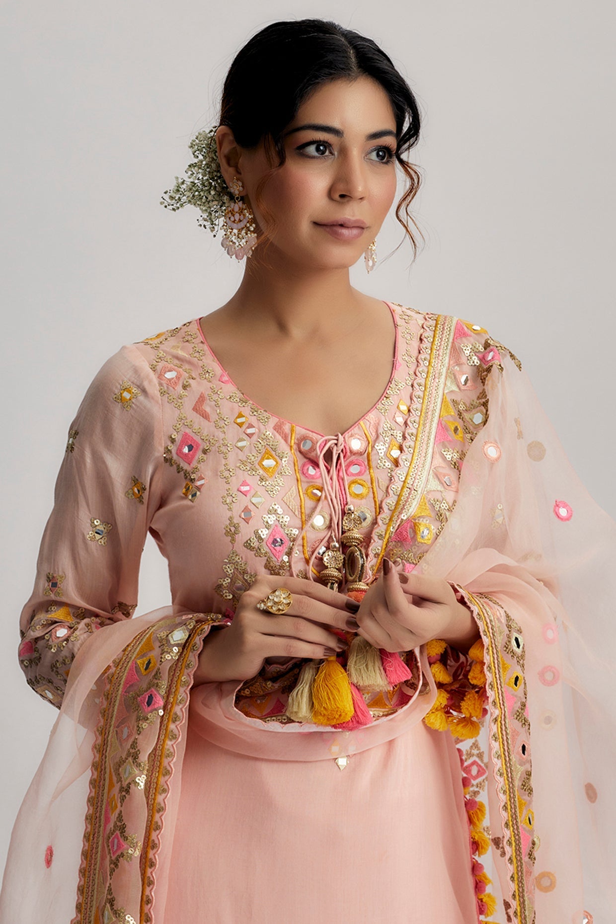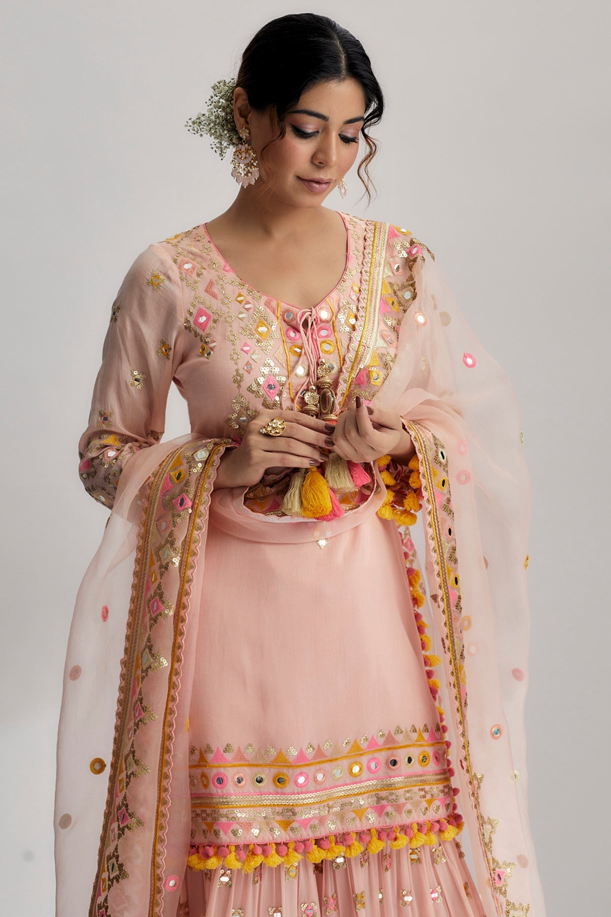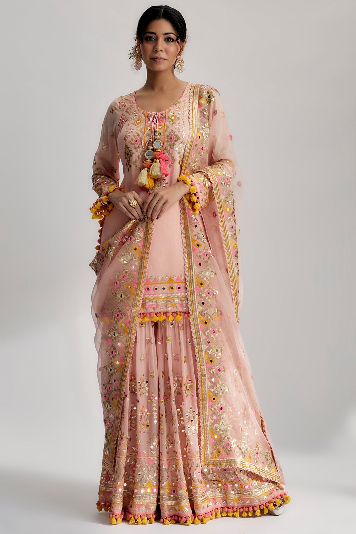 Material : Kurta - Cotton Silk, Sharara - Georgette, Dupatta - Organza