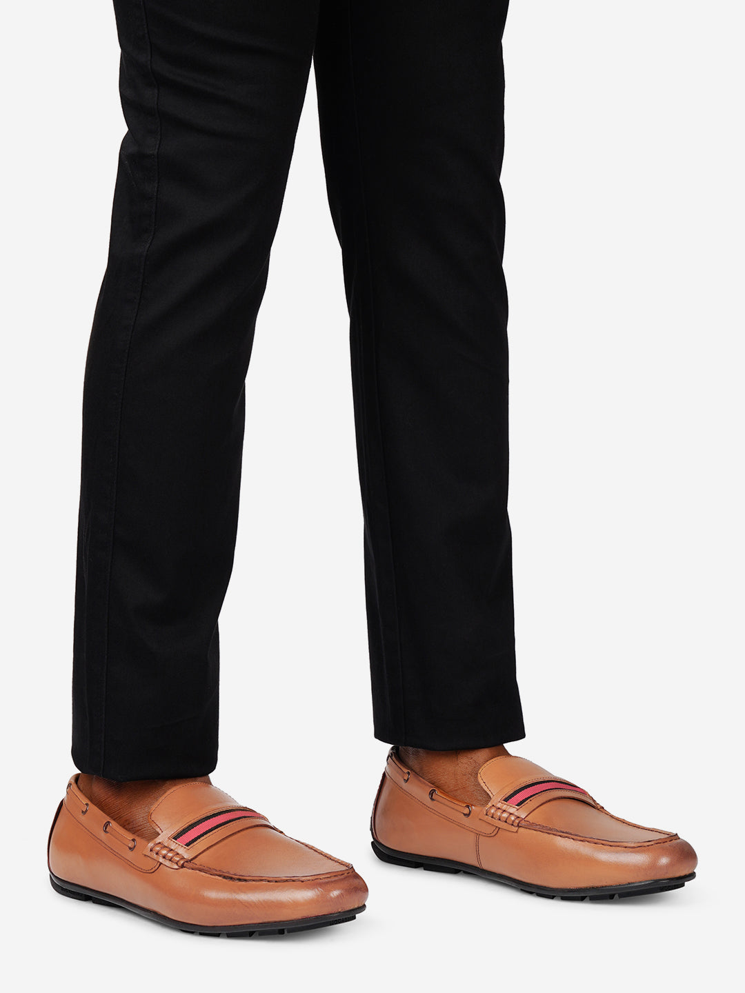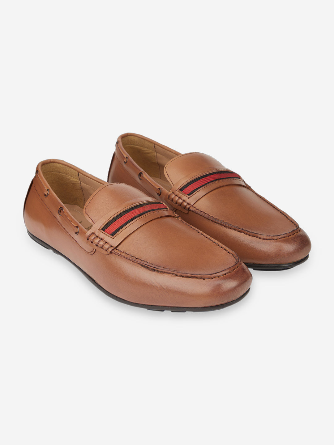 Men Striped Lightweight Leather Loafers