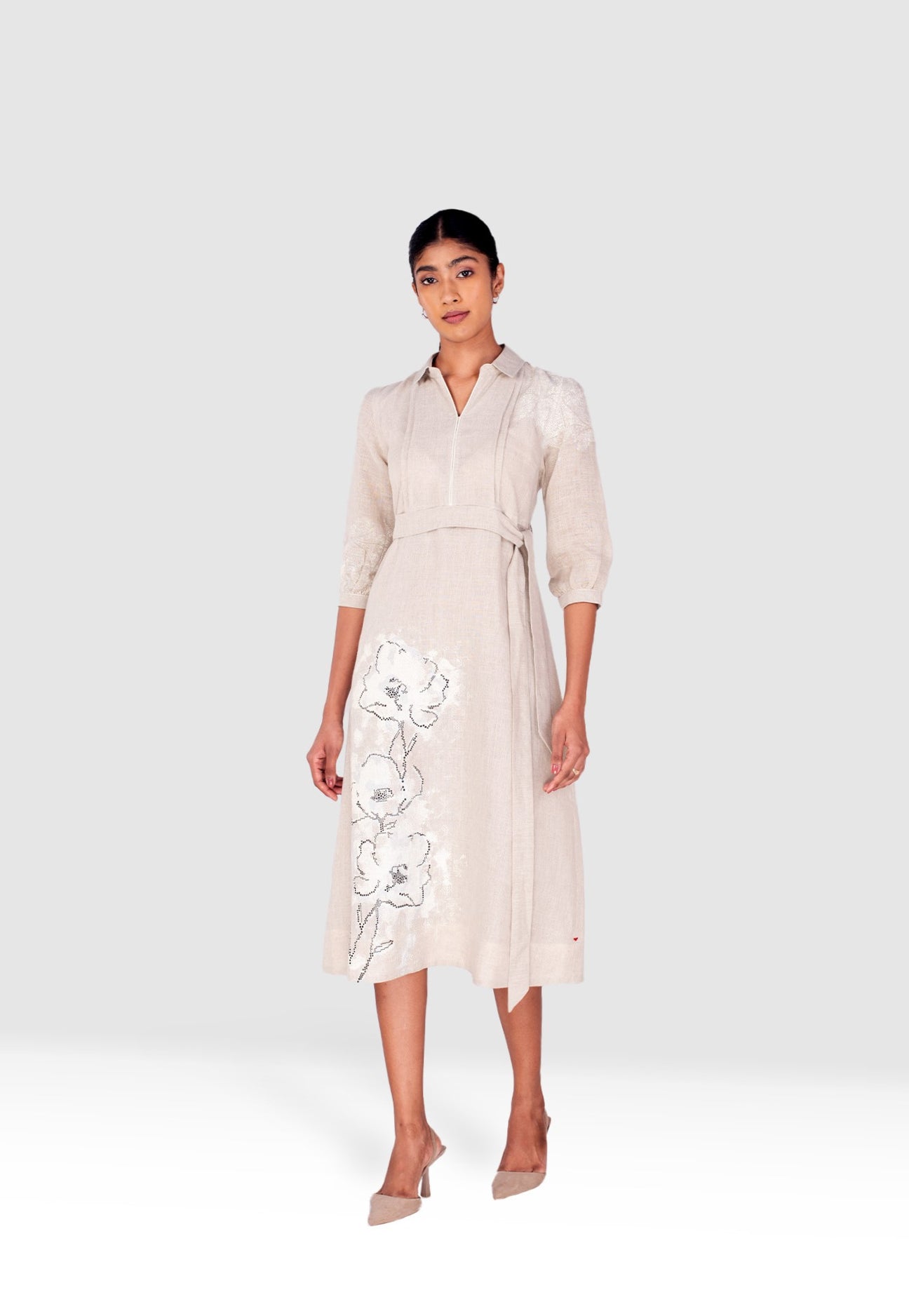 Inspired by the art of Pointillism, our love for blooms is dotted with heat transfer studs and hand-screen printed on luxurious linen to let you flaunt your style with a bouquet woven from a dreamy garden. Simple, feminine, and graceful. Available in captivating shades of neon and natural.
