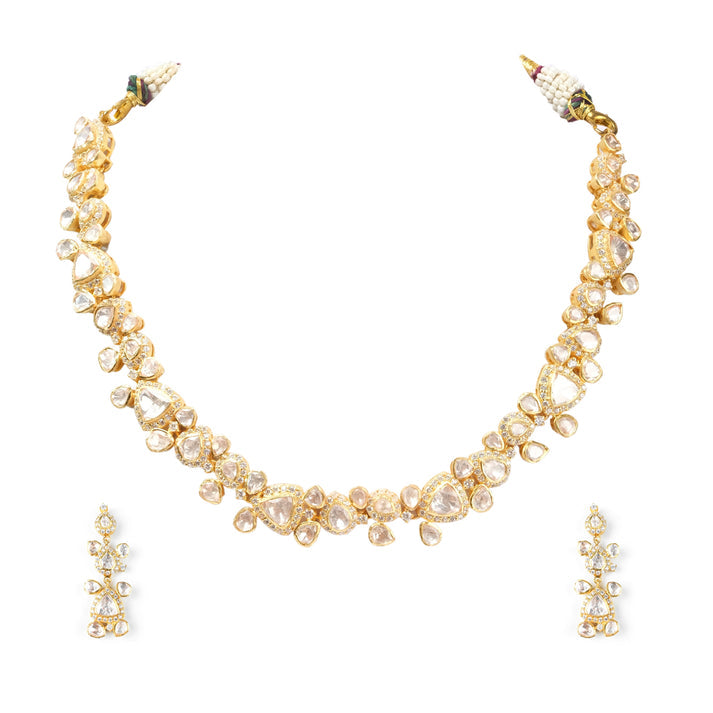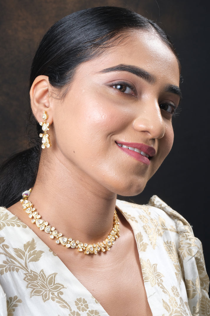 The set is crafted in 925 silver and rhodium plated. Each piece is handcrafted and hence- colour shape and size of the stone may vary. Imperfection is what makes them unique .